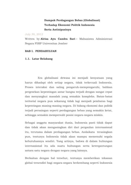 Dampak Perdagangan Bebas Globalisasi Terhadap Ekonomi Politik Indonesia Serta